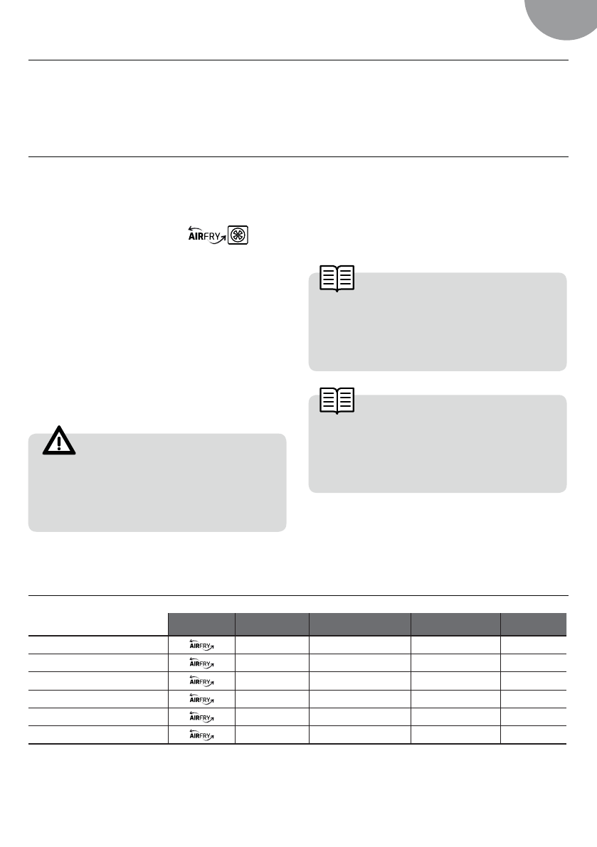 * Il peut être nécessaire d’ajouter une cuillère à café d’huile lors de la cuisson de certains aliments