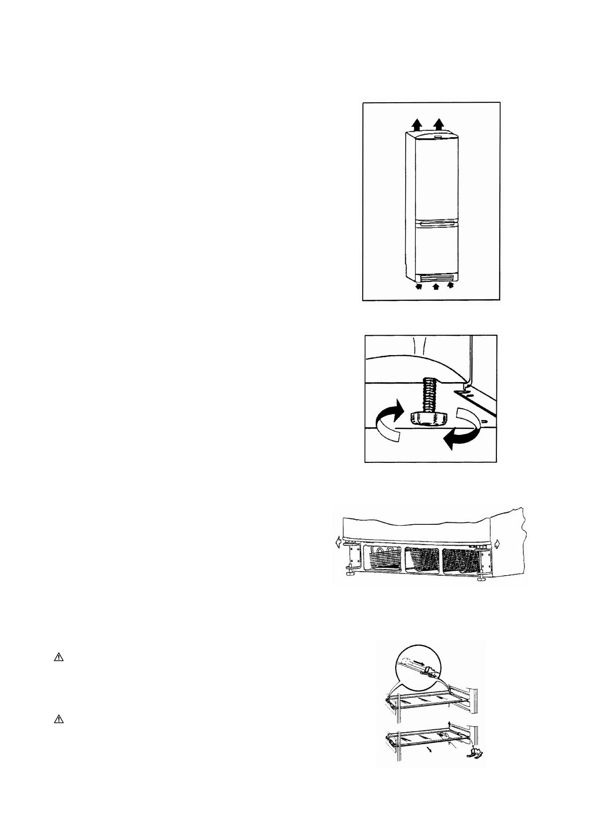 • Чтобы выровнять положение холодильника, подкру-