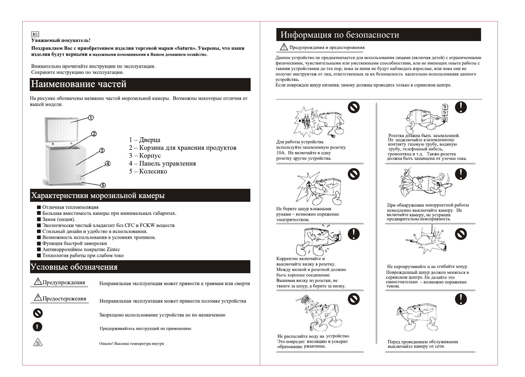 Морозильные камеры Saturn ST-CF1905 - инструкция пользователя по применению, эксплуатации и установке на русском языке. Мы надеемся, она поможет вам решить возникшие у вас вопросы при эксплуатации техники.