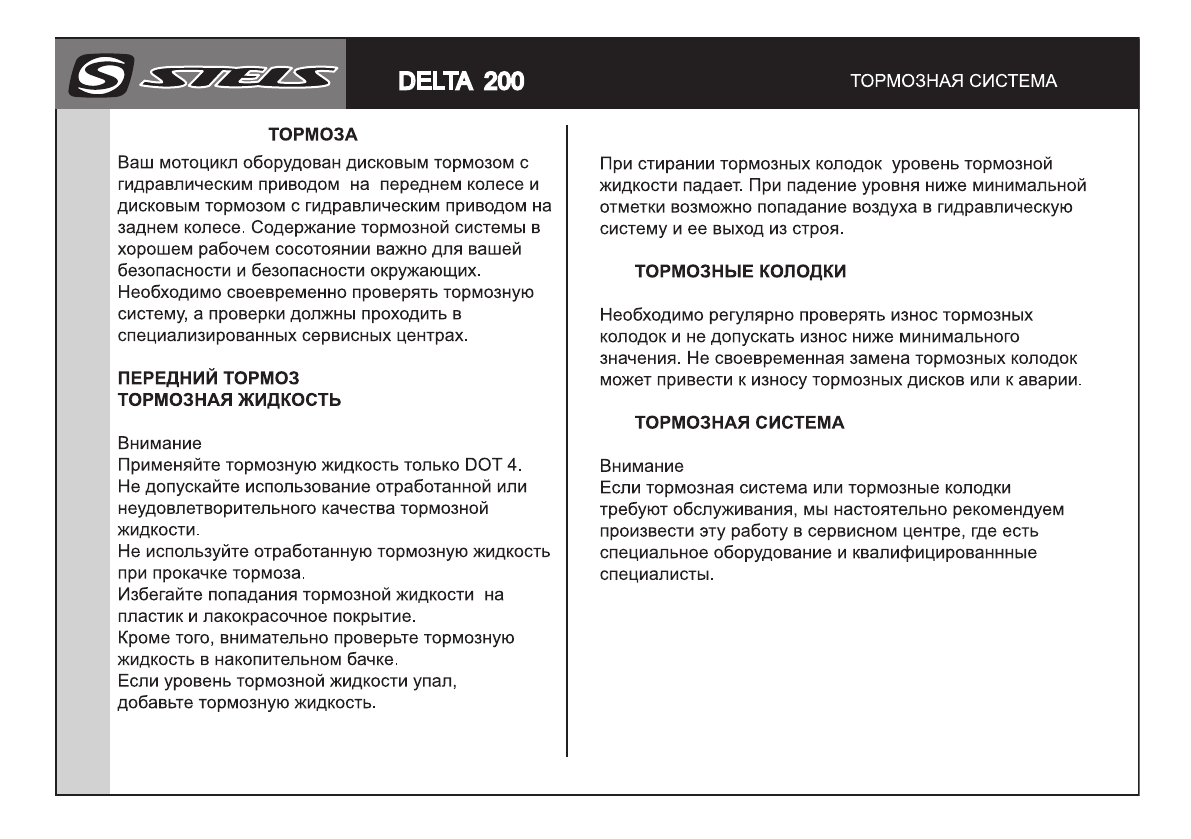 Мотоциклы Stels Delta 200 - инструкция пользователя по применению, эксплуатации и установке на русском языке. Мы надеемся, она поможет вам решить возникшие у вас вопросы при эксплуатации техники.
