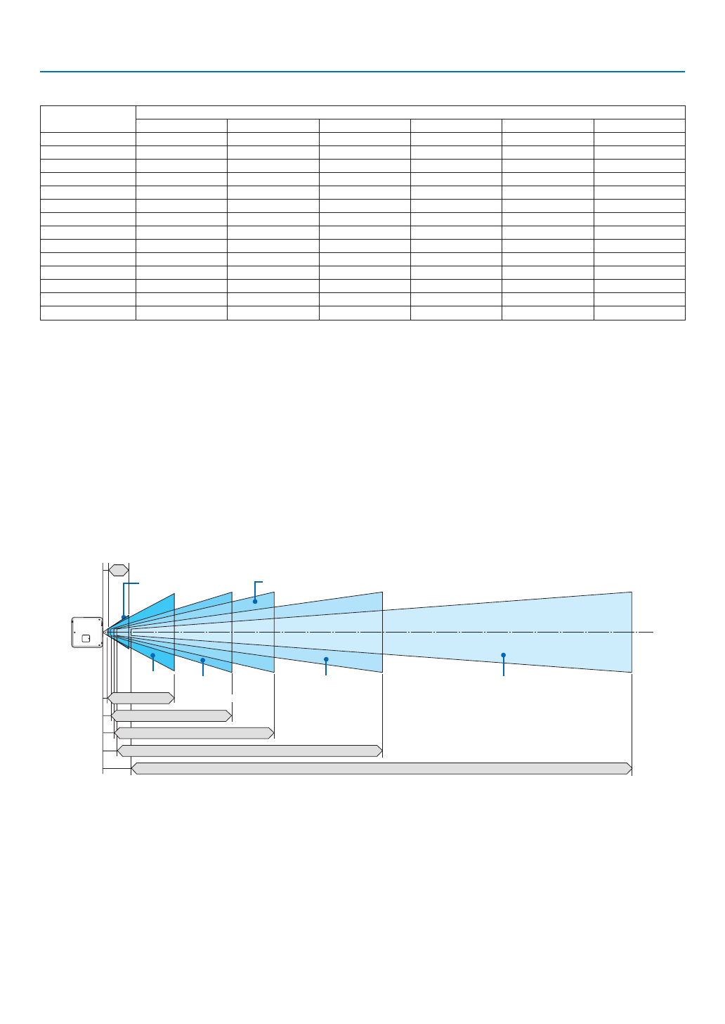 - 226 Расстояние до проекции и размер экрана; Таблица размеров экрана