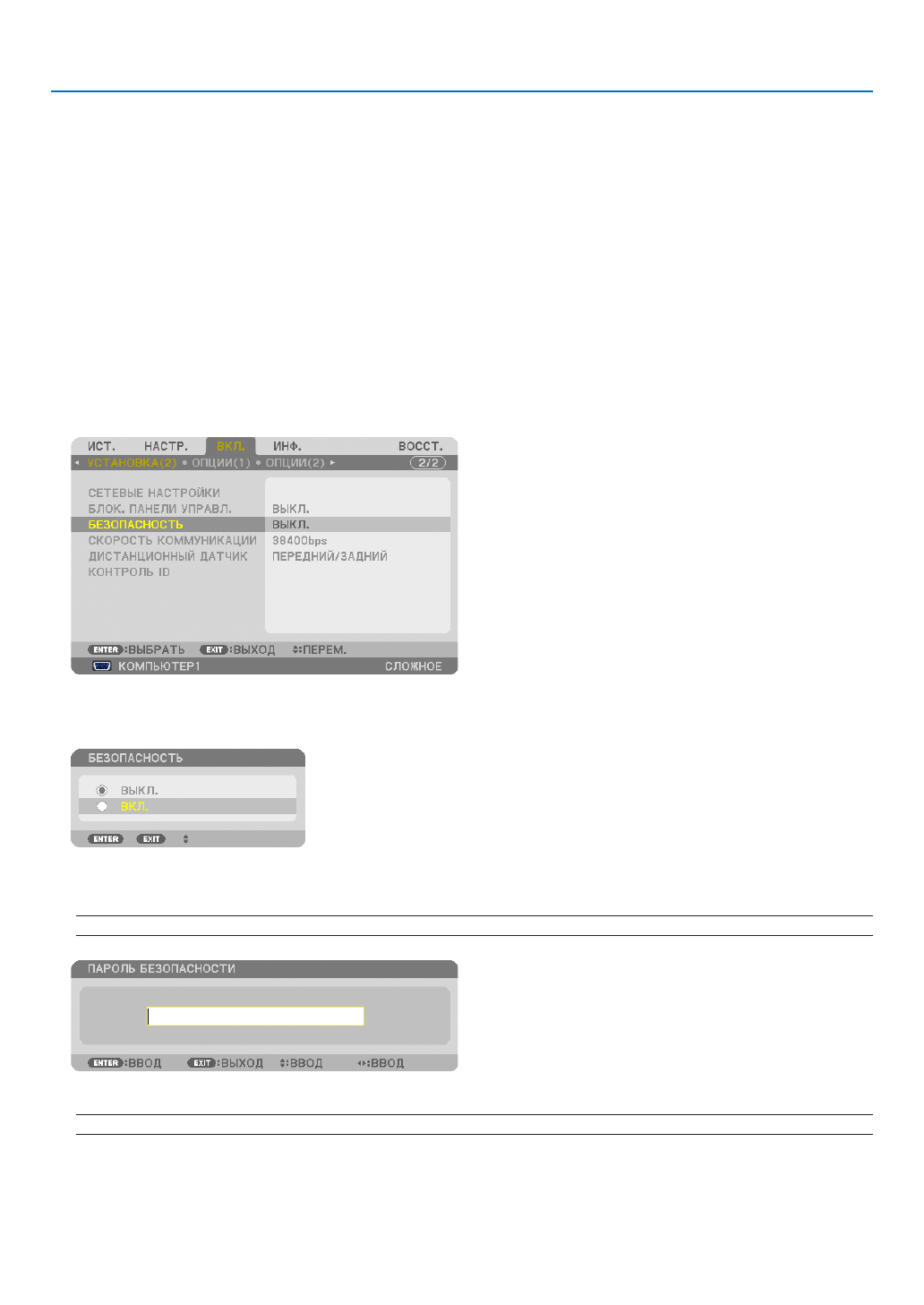 Для проектора с помощью меню можно установить пароль, чтобы избежать несанкционированного доступа. Если па-
