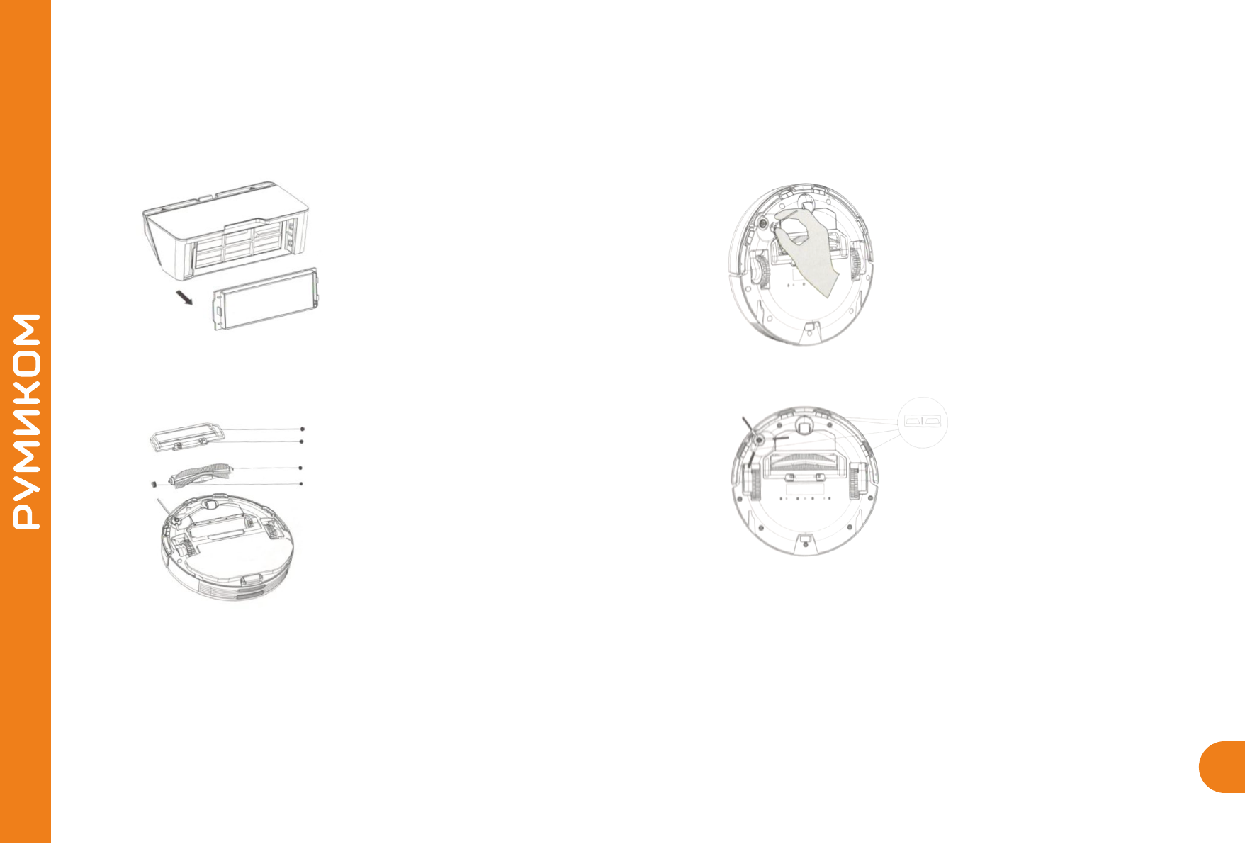 Постоянно отсоединяйте и очищайте боковые щётки.