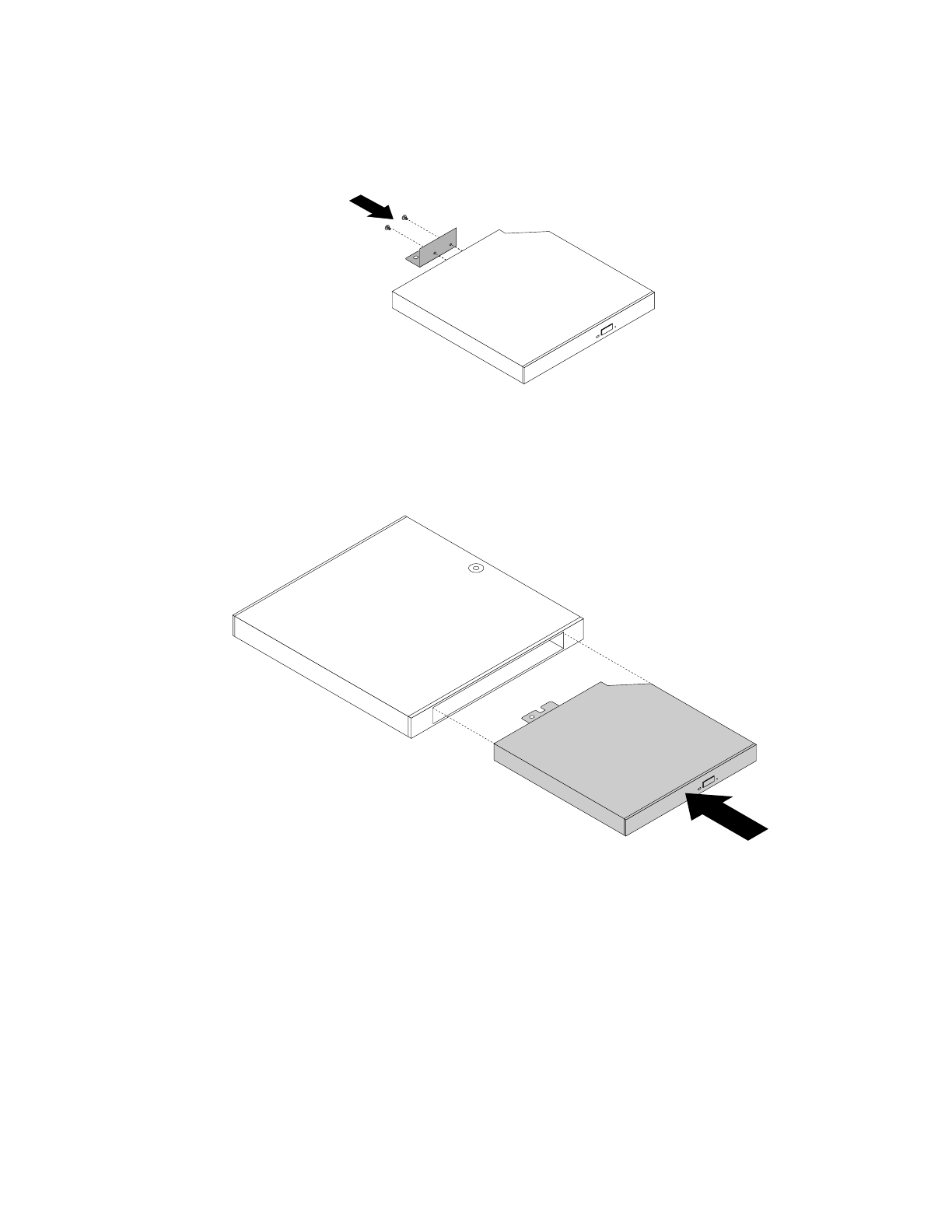 отверстиями на новом внешнем дисководе для оптических дисков, затем установите два винта,