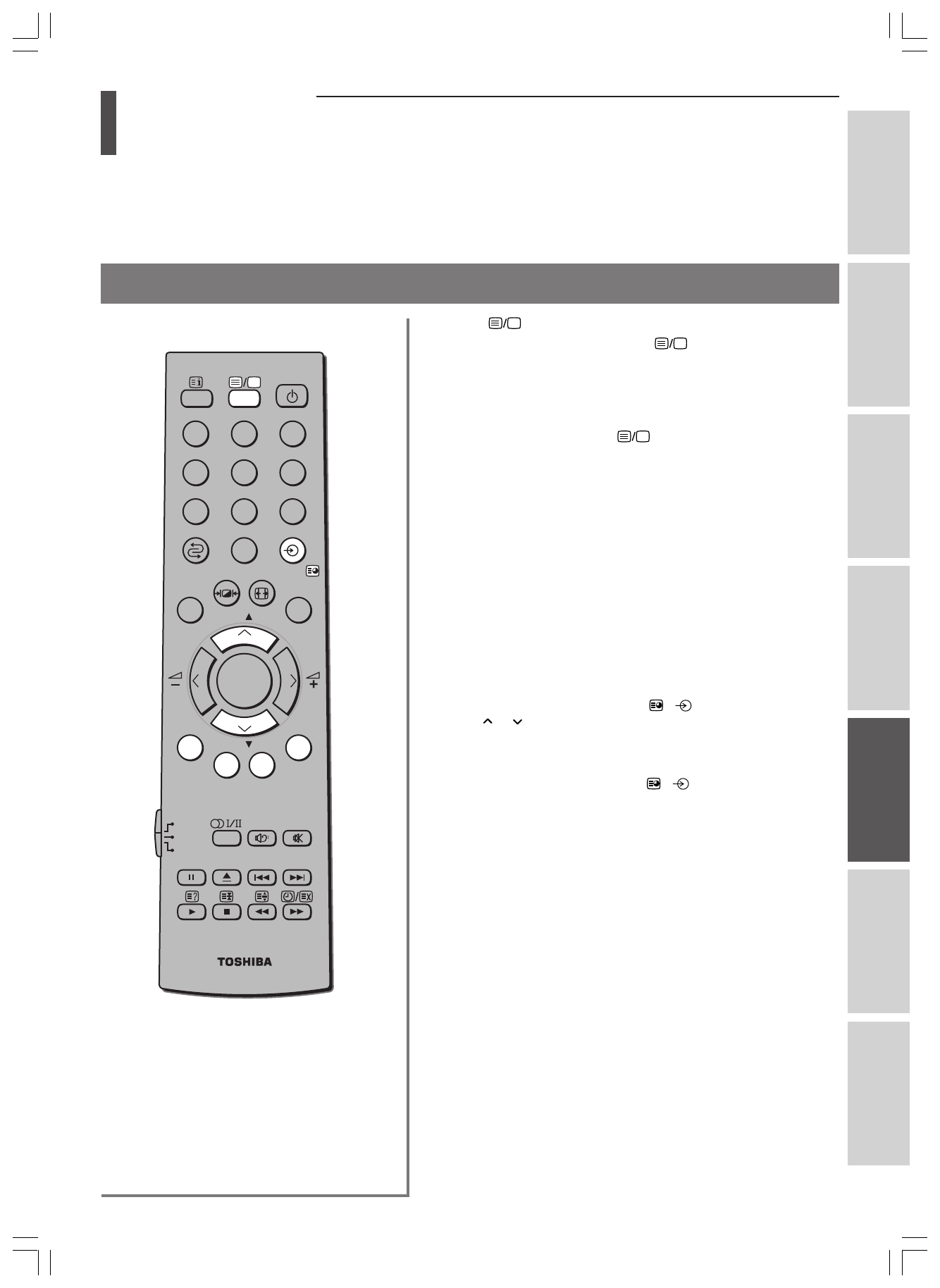 - 43 Teлeтeкcт – кнопки yпpaвлeния; Кнопки тeлeтeкcтa нa пyльтe диcтaнционного yпpaвлeния