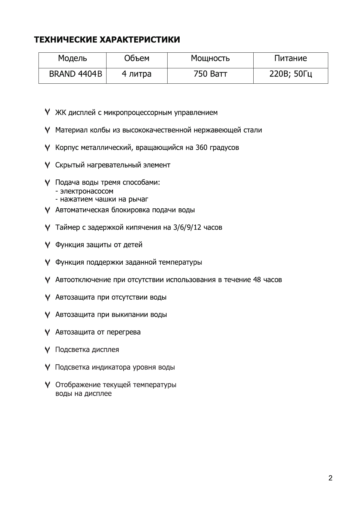 Brand 4404B - Инструкция по эксплуатации - Страница 2