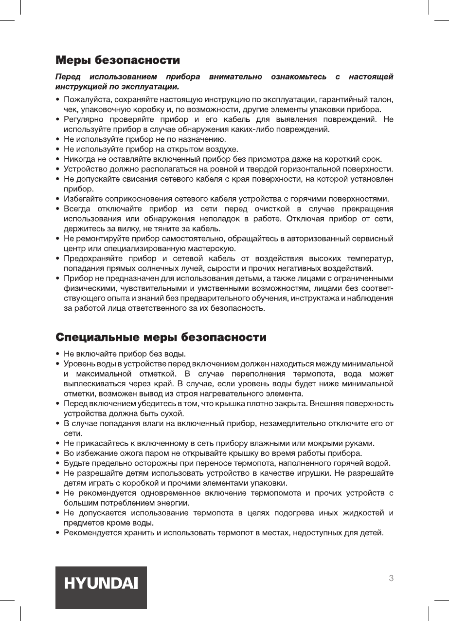 Термопоты Hyundai HYTP-3850 - инструкция пользователя по применению, эксплуатации и установке на русском языке. Мы надеемся, она поможет вам решить возникшие у вас вопросы при эксплуатации техники.