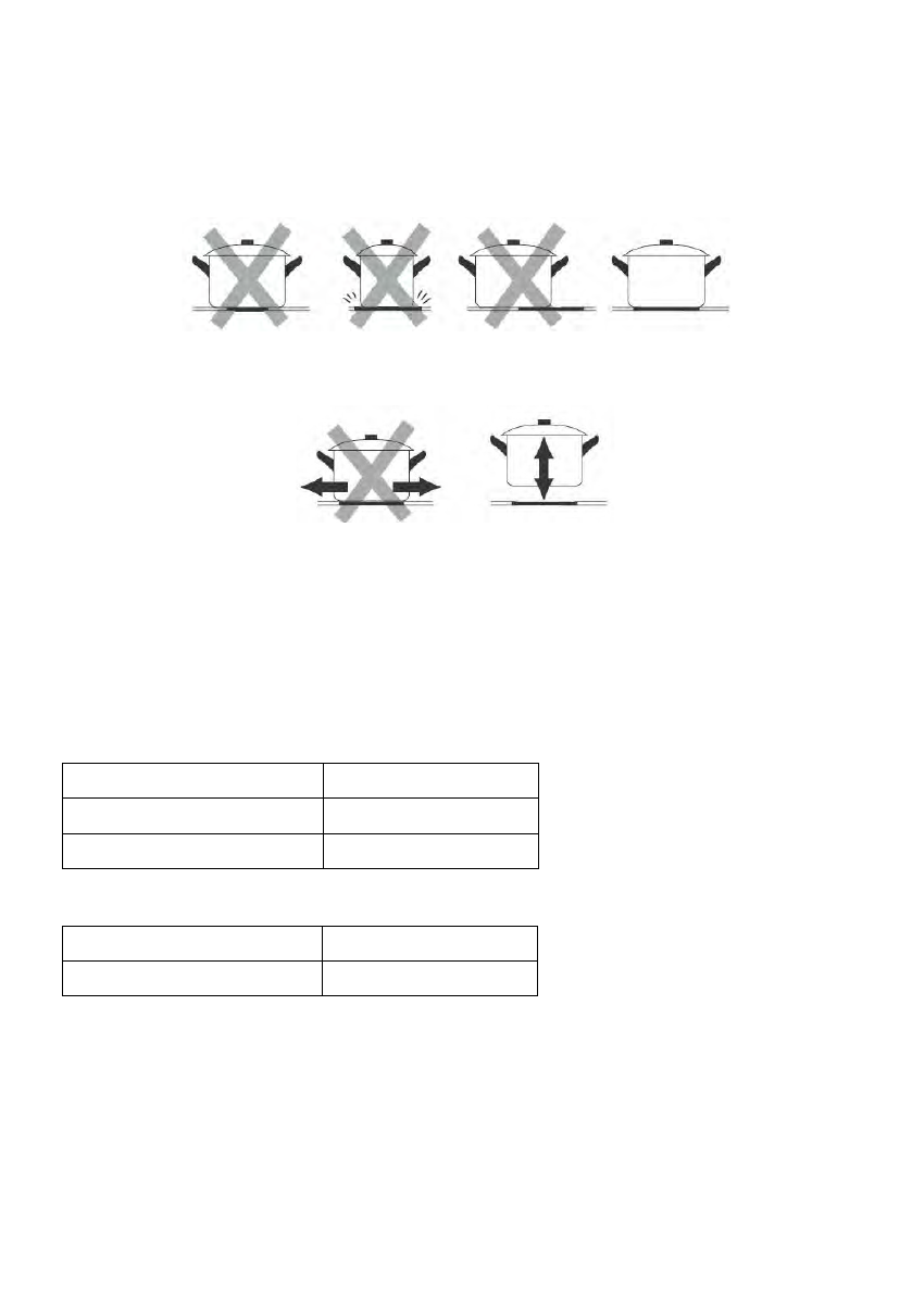 acordo com a zona de indução correspondente. Para obter mais eficiência da sua