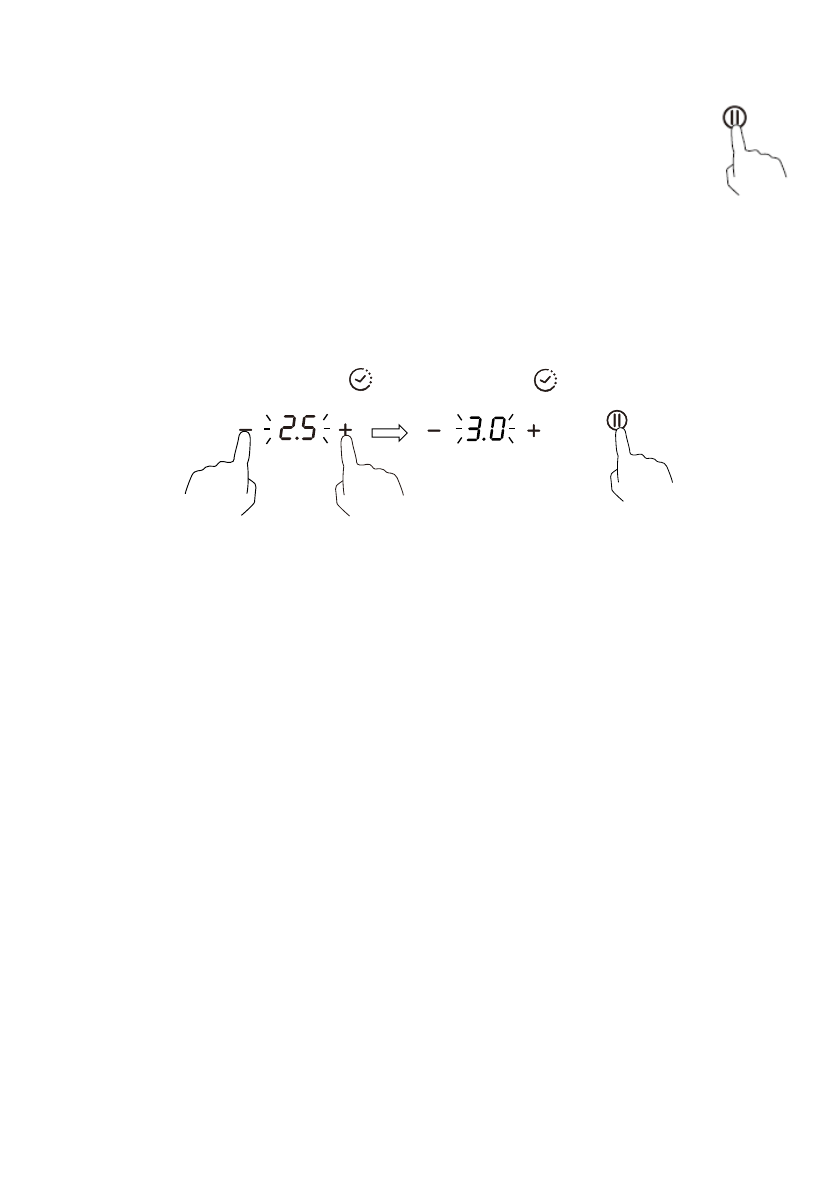 aumenta toccando "+", il piano di cottura emette 3 segnali acustici e l'indicatore lampeggia