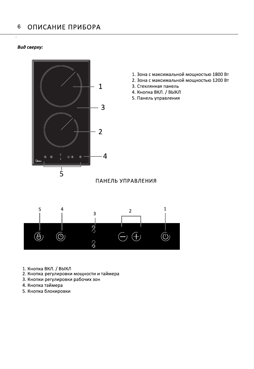 Варочная панель Midea MCH32130F/FW - инструкция пользователя по применению, эксплуатации и установке на русском языке. Мы надеемся, она поможет вам решить возникшие у вас вопросы при эксплуатации техники.