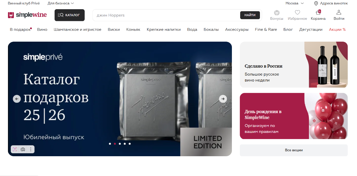 - Специальные предложения: SimpleWine предлагает акции «Купи два — получи третий в подарок» или «Скидка на следующую покупку». Такие предложения делают покупки более интересными и выгодными.